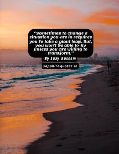 32) ”Sometimes to change a situation you are in requires you to take a giant leap. But, you won’t be able to fly unless you are willing to transform.”