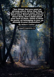 19) ”See things that you want as already yours. Know that they will come to you at need. Then let them come. Don’t fret and worry about them. Don’t think about your lack of them. Think of them as yours, as belonging to you, as already in your possession.”